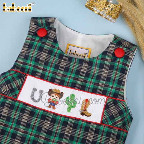 Smocked western cowboyboy green and black tartan shortall - BB1924
