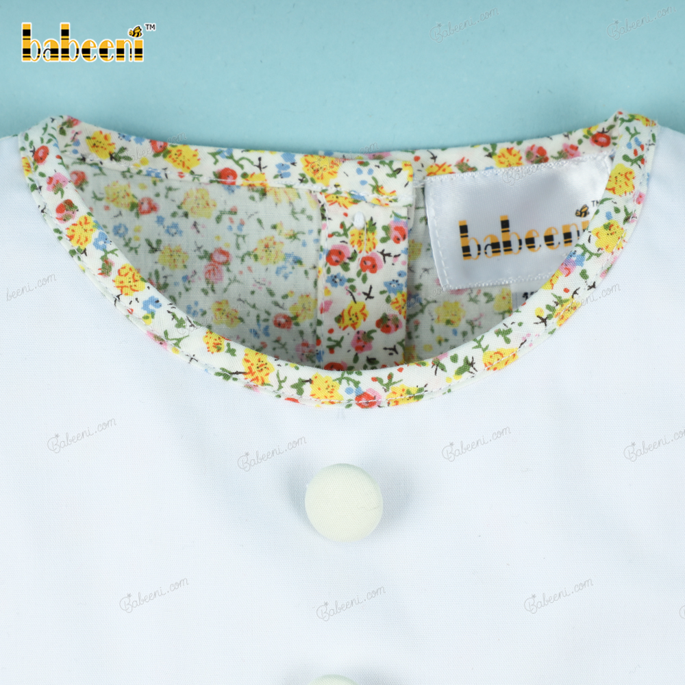 Feature: A lovely set for girls this summer. It comes with yellow tiny floral fabrics in a sleeveless style.