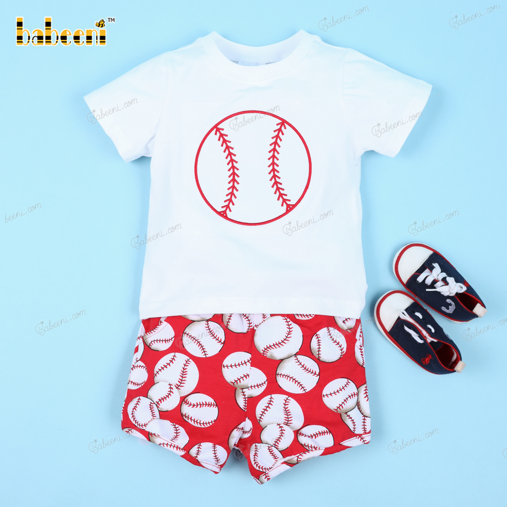 Feature: This ensemble features a gorgeous white top and a crimson bottom. Additionally, a baseball is displayed on the chest to keep your young athlete looking fashionable this summer.