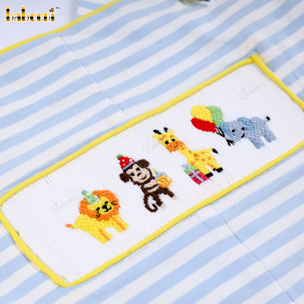 Animal hand smocked boy shortall – BB3068