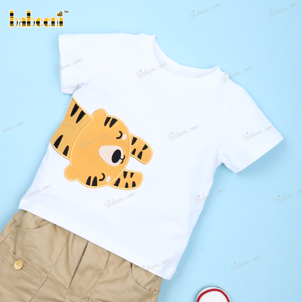 Applique Outfit White Top With Tiger For Boy - BB3175A