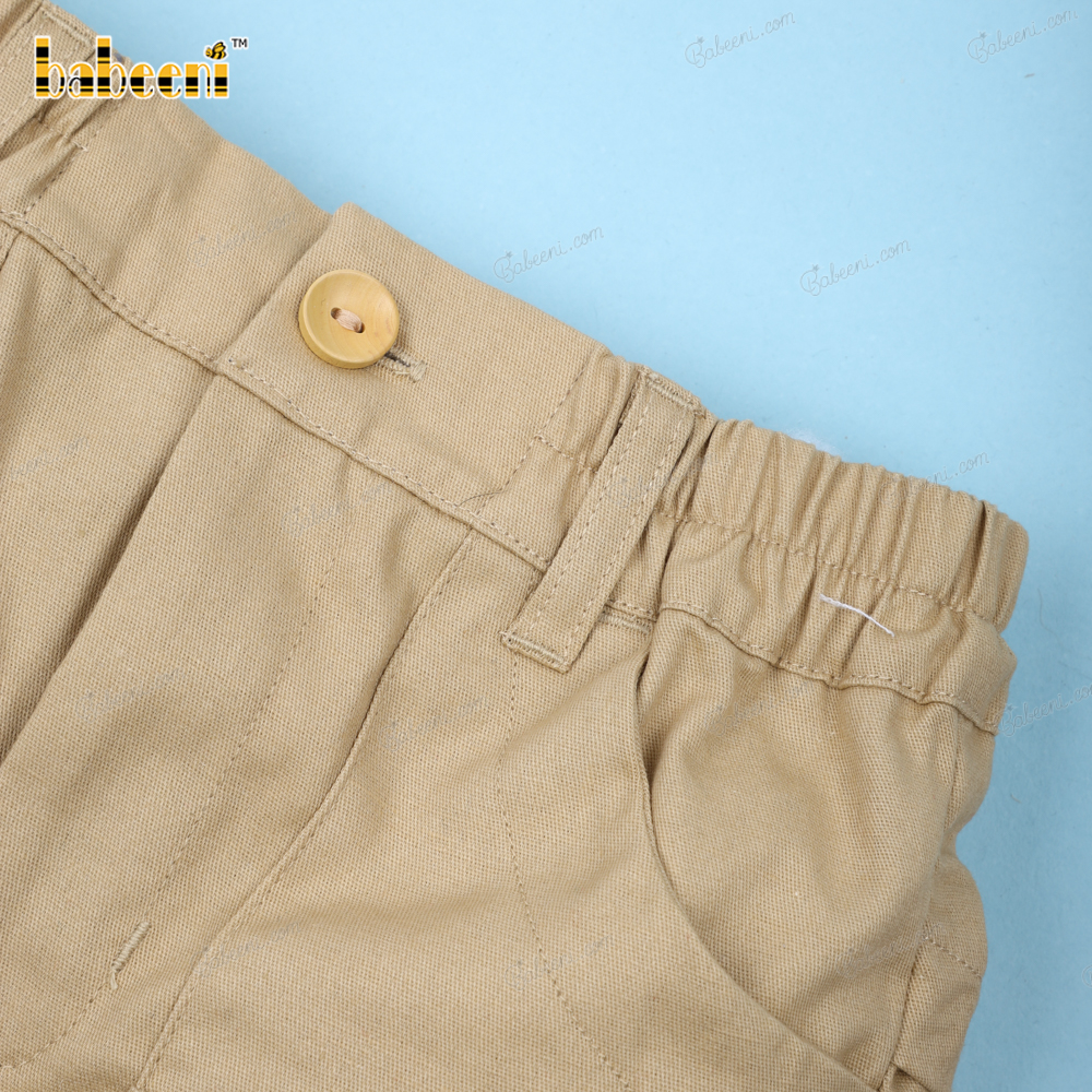 Feature: A cute tiger on the front of the chest with white top pair it with a kaki bottom. This outfit is simple but tasteful for your boy on a day out this summer.