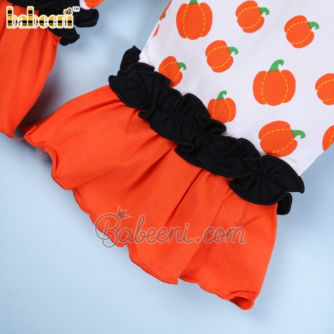 Appliqued pumpkin Halloween and pumkin printed girl set - BB812A