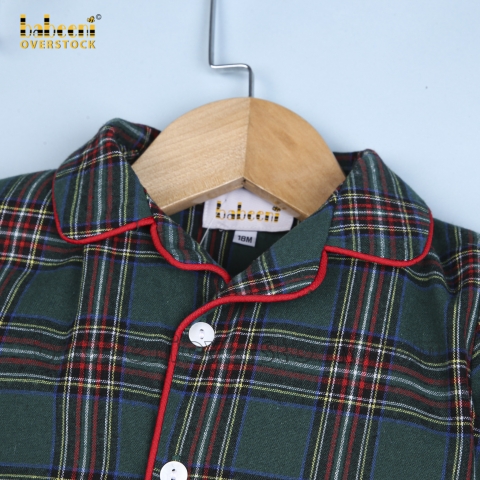 Feature: Little boy sleepwear with classic collar, two functional pockets, mother pearl buttons for easy wearing