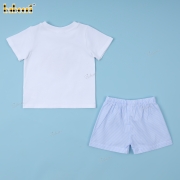 Boy Outfit White And Blue With Embroidered Details - BB3405A