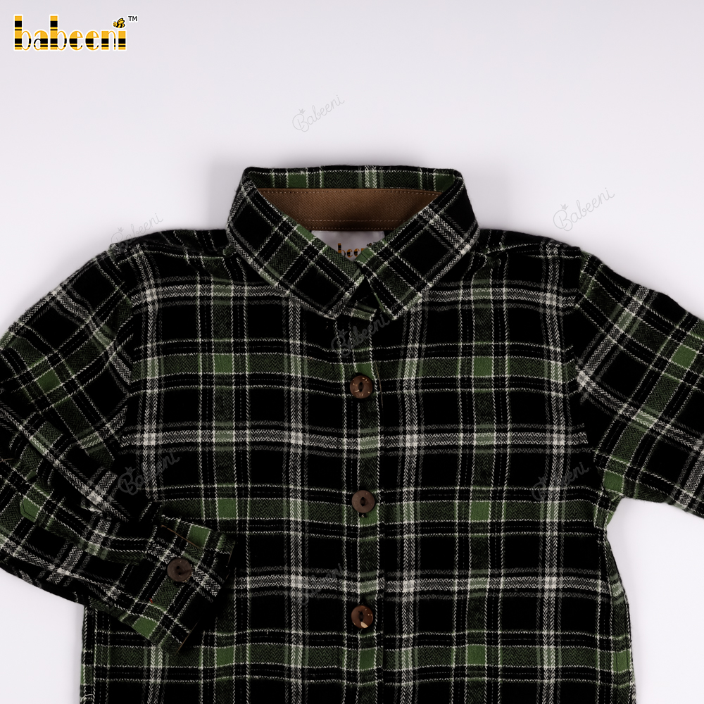 Feature: This boys' outfit boasts a stylish yet dynamic look with a classic dark blue flannel plaid shirt, featuring long sleeves that can be neatly rolled up. The convenient front button closure, combined with neutral brown khaki shorts, creates a harmonious and fashionable overall look. The design is perfect for playtime, parties, photoshoots, or other special occasions.