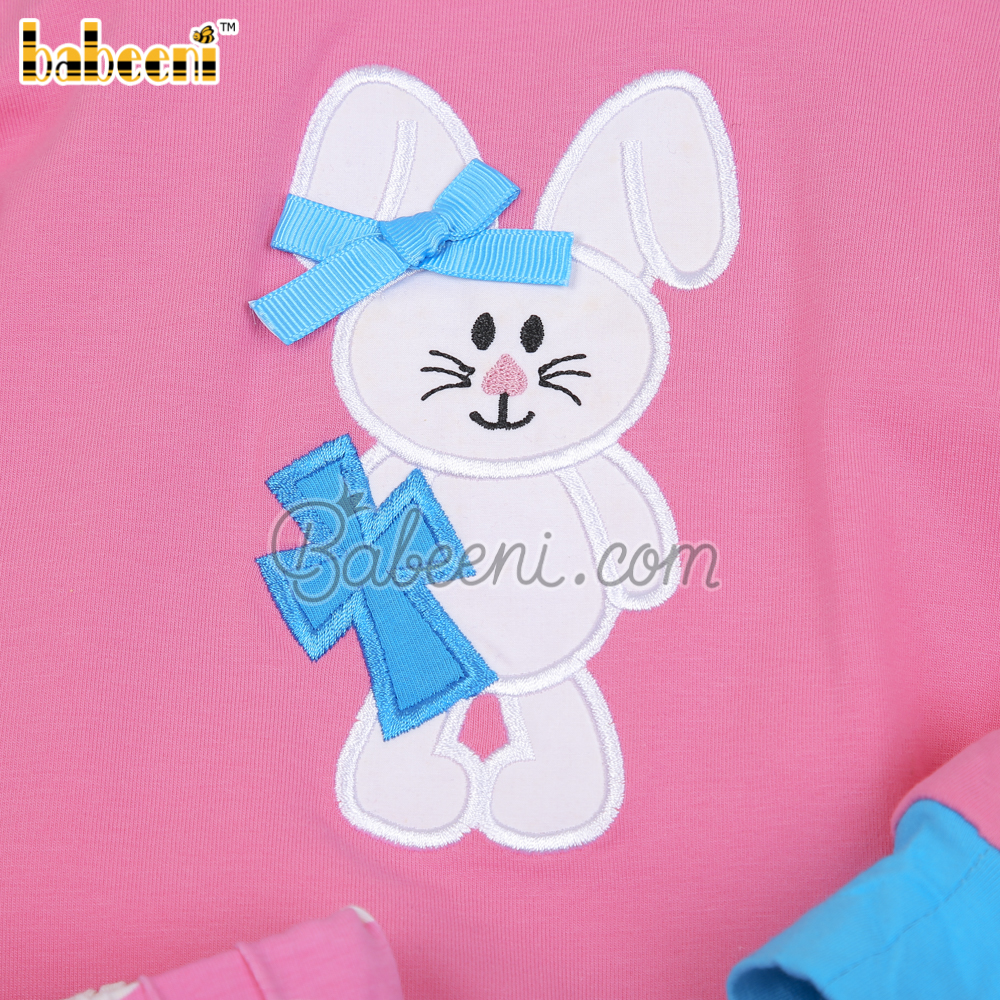 Bunny with cross appliqued kid set for Easter - BB1035B