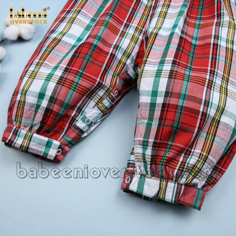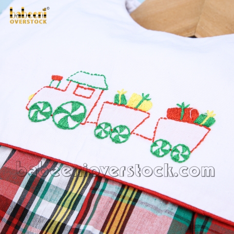 Feature: Nice long bubble for little boy on Christmas with gift train hand embroidery patterns on the large square collar, long sleeves.
