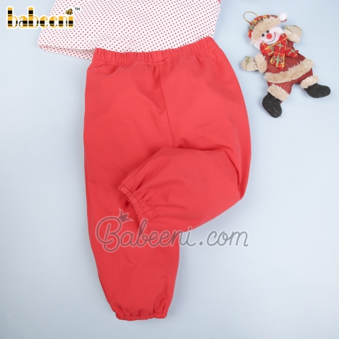 Features: Nice smocked set clothing for little boys with hand Christmas train on the chest, red piping on collar & sleeves. Perfect for Christmas. Best gifts for birthday or special days.