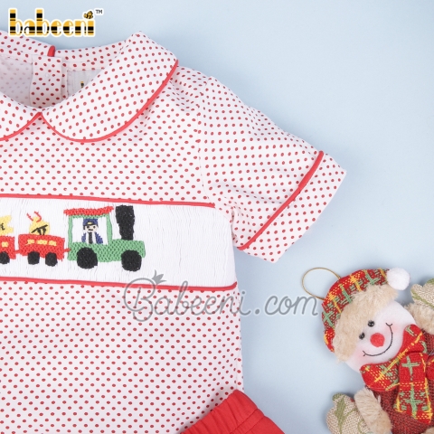 Christmas Train smocked boy set clothing – BB2852D
