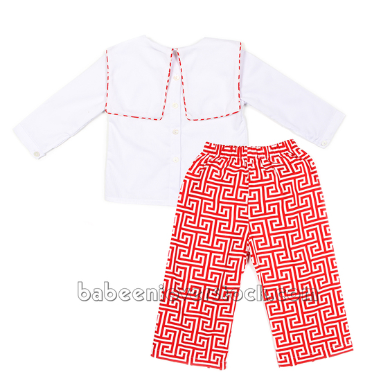 Christmas tree hand embroidered long set for boy - BB1317C