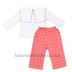 Feature: Nice clothing set for little boy on Christmas with pine tree hand embroidered patterns on large square collar, long sleeves.