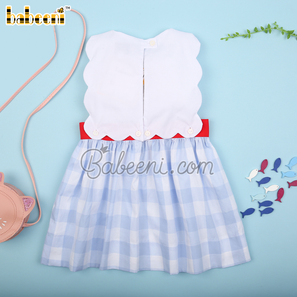 Features: Lovely dress for little girls with crochet of Crabs on the chest, red zigzag on bottom, sleeveless. Perfect for Spring summer. Best gifts for birthday or special days.