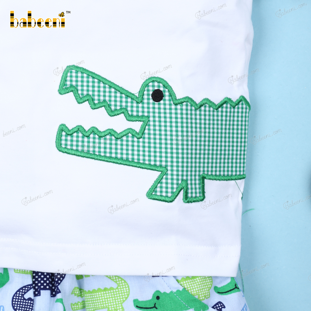 Cute Alligators Applique 2 Pieces Set For Boy - BB3166A