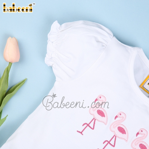 Cute embroidered flamingo T-shirt girl - BB1869A