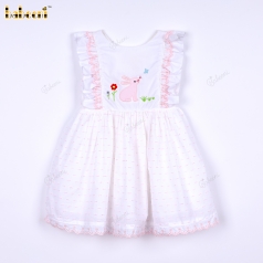 Shirred Dress Hand Embroidery Bunny Pink For Girl - BB3248A