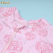 Fancy Pink Swimwear with bow tie and sweet candy pattern For Girl - BB3432B