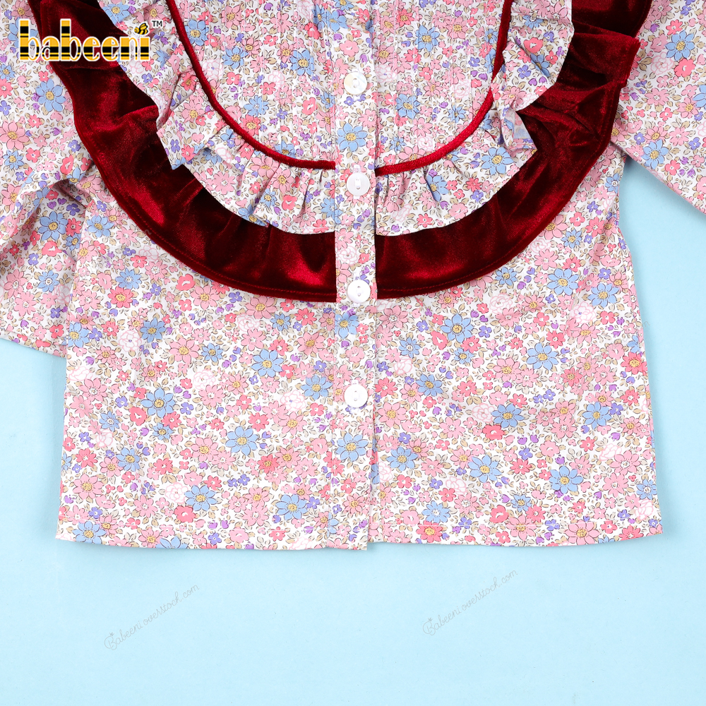 Floral Shirt Red Vletvet For Girl - BB3352D