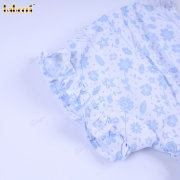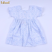 Geometric Smocked Dress Blue Flower On White For Girl - BB3286A