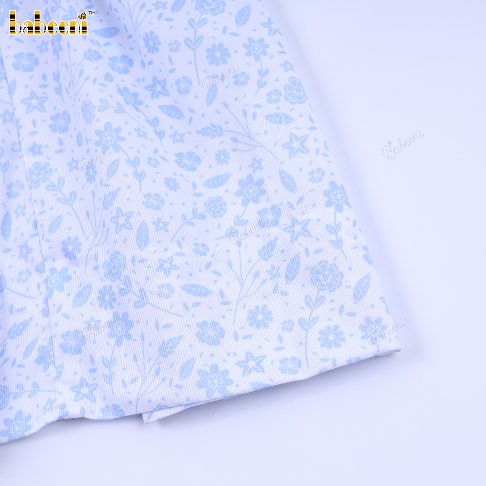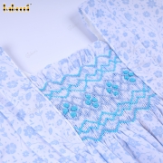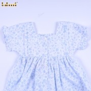 Geometric Smocked Dress Blue Flower On White For Girl - BB3286