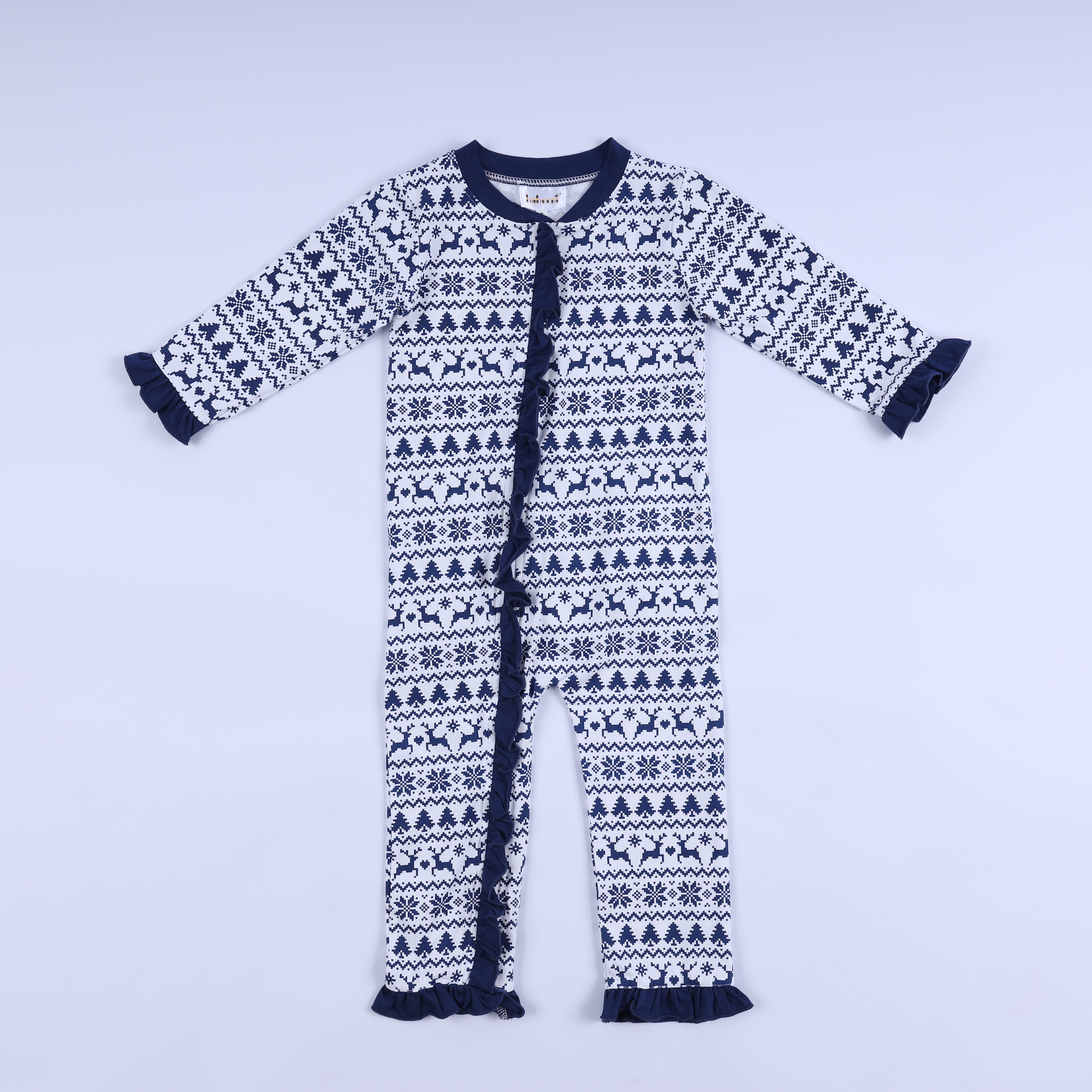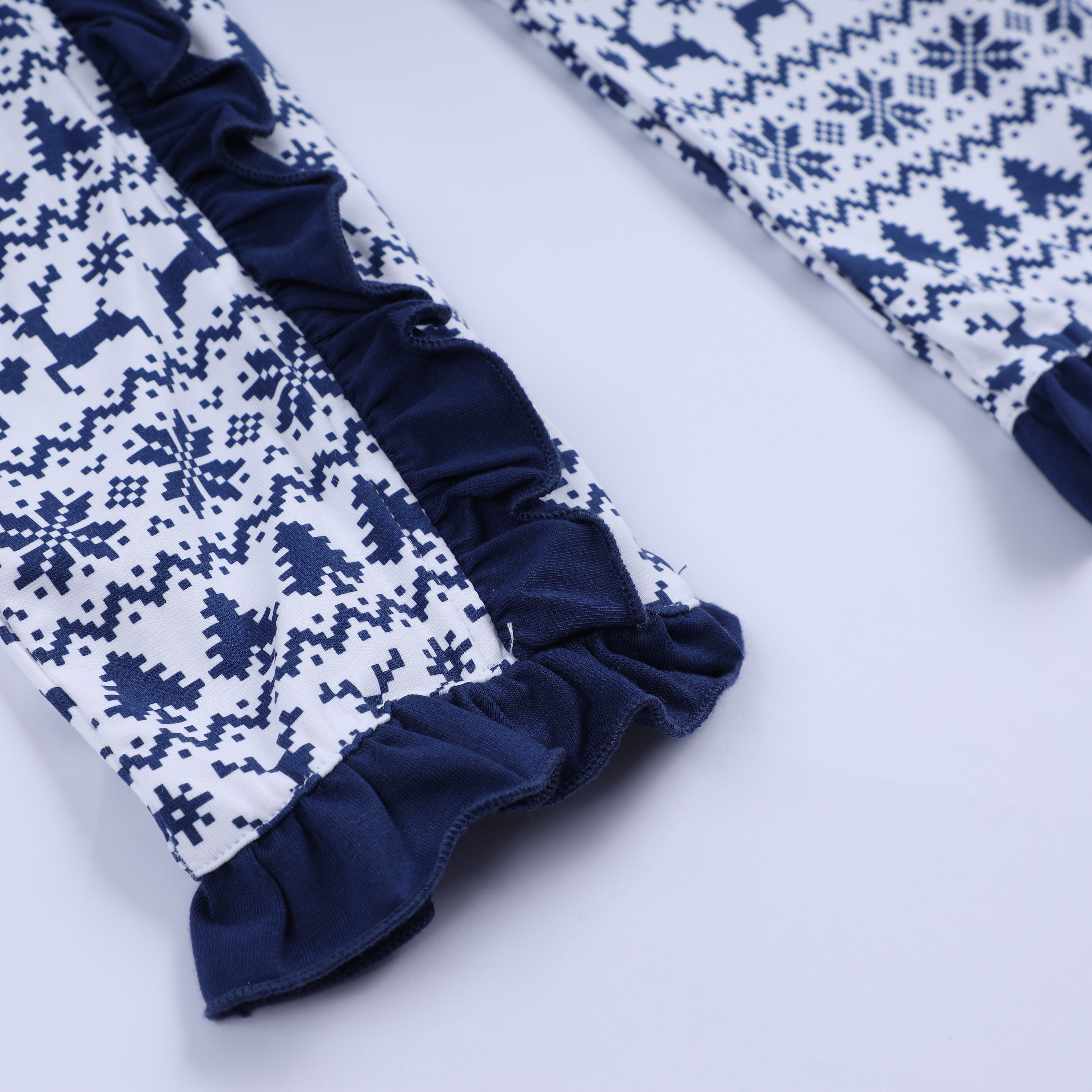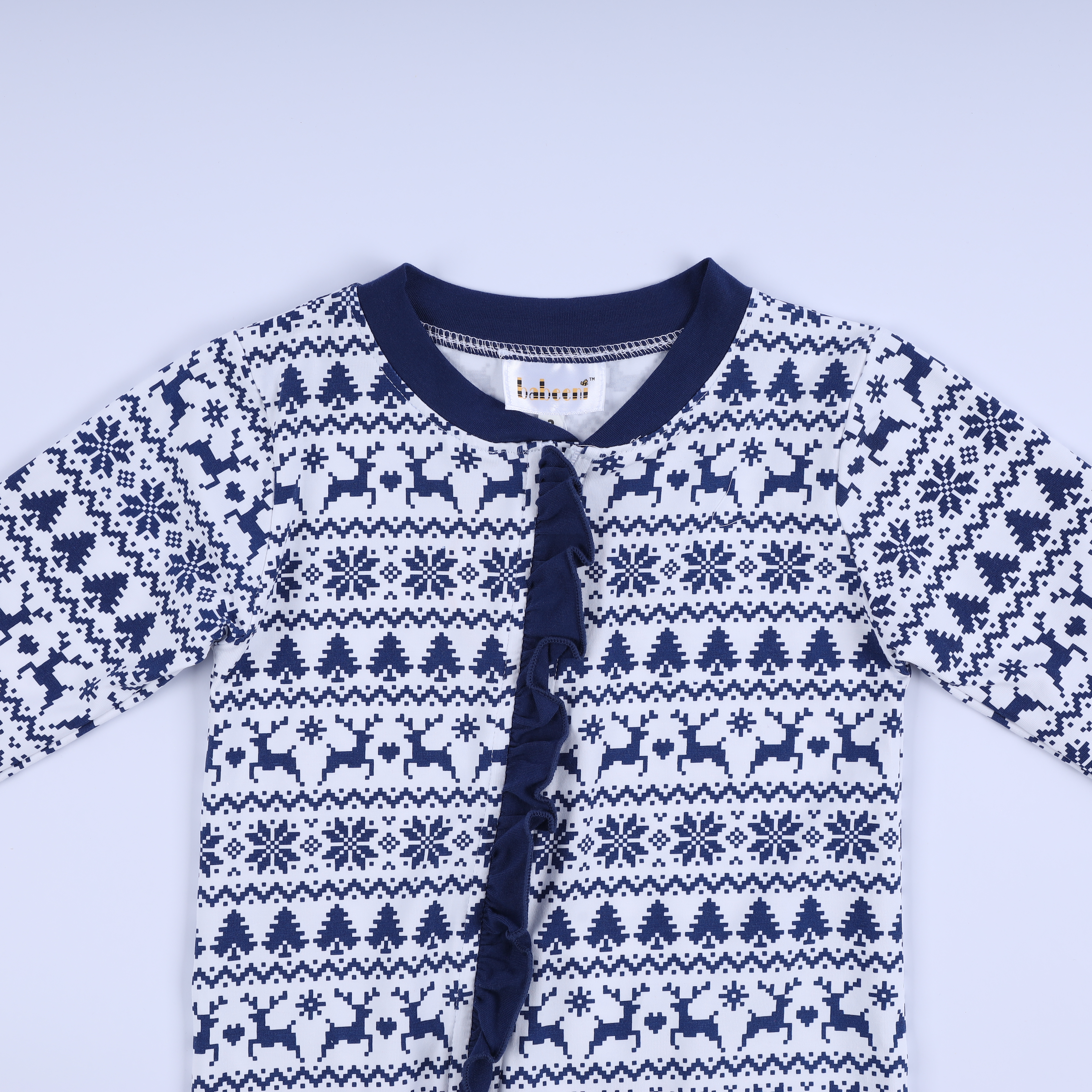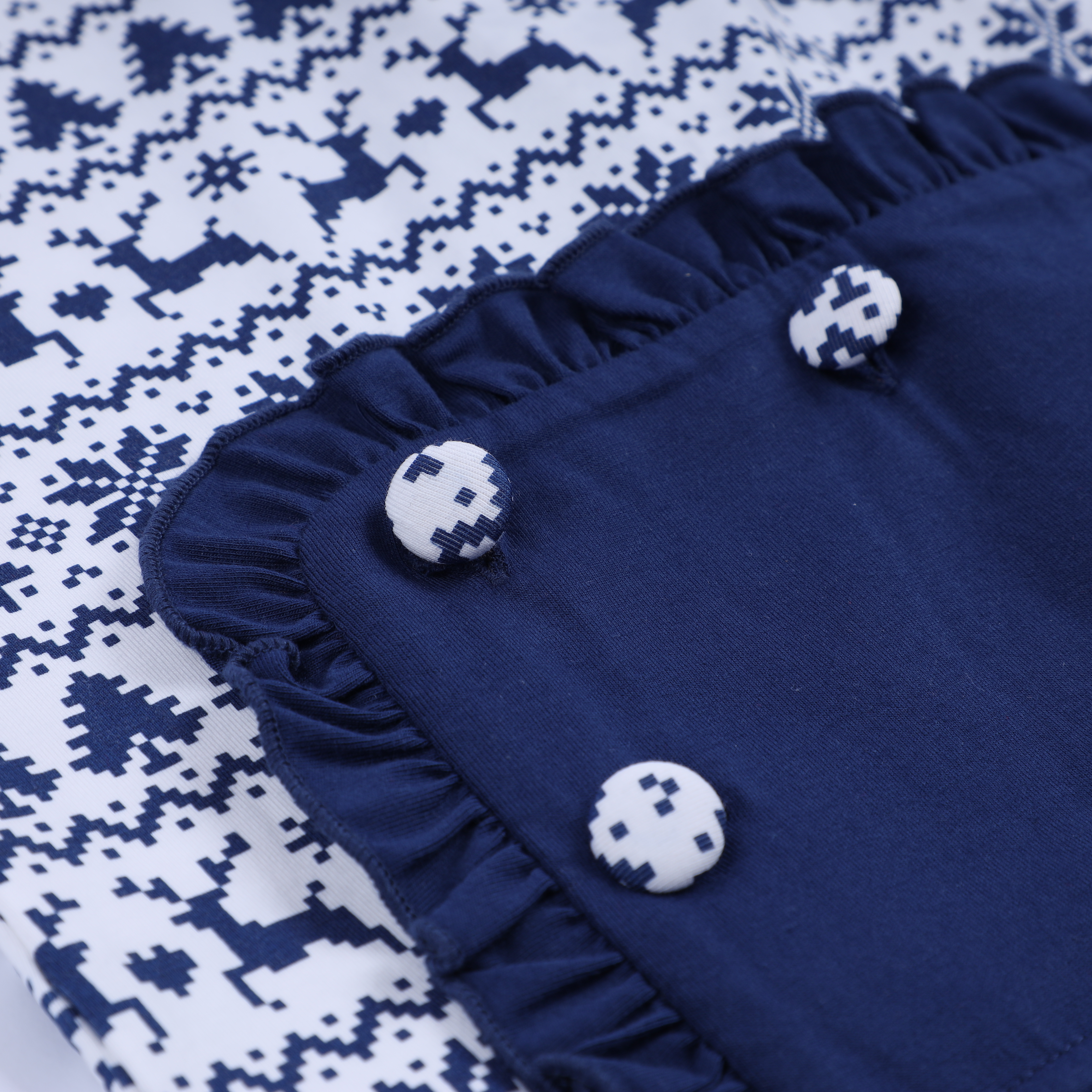 Features: This baby Christmas outfit features a classic Christmas motif with subtly repeating images of reindeer, Christmas trees, and snowflakes. The elegant charcoal purple and white color scheme creates a warm, sophisticated feel, perfect for winter. The long sleeves with ribbed collar, cuffs, and ankles provide excellent warmth, protecting your baby in cold weather. The dark blue back pocket adds a cute and practical touch. Suitable for everyday wear, outings, photoshoots, or Christmas celebrations.