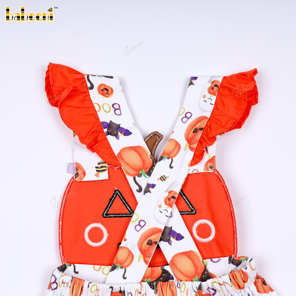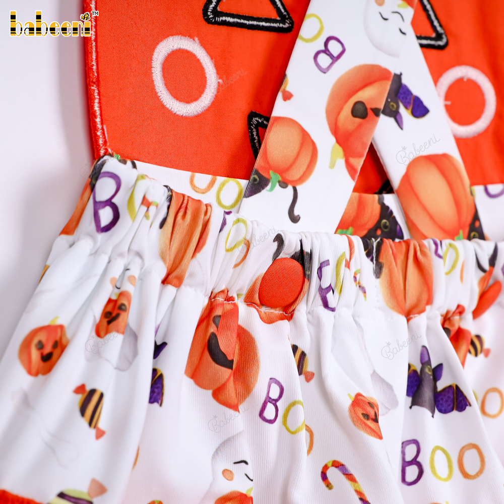 Features: Lovely Halloween overalls for little girls with applique of big pumpkin on the chest. Best gifts for birthday or Halloween days.