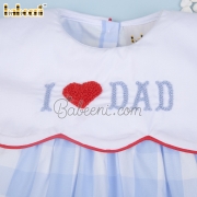Features: Fancy baby bubble for little girls with embroidery of I love Dad on the chest, scallop around top, red hem around collar. Perfect for Spring summer. Best gifts for birthday or special days.