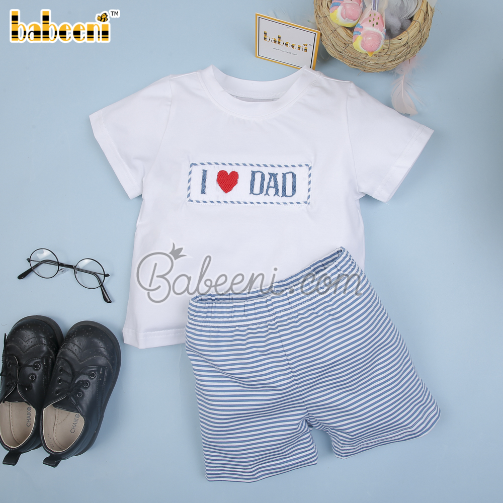 I love Dad hand smocked boy set clothing – BB3022C