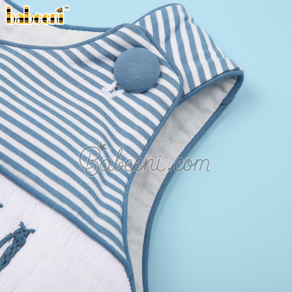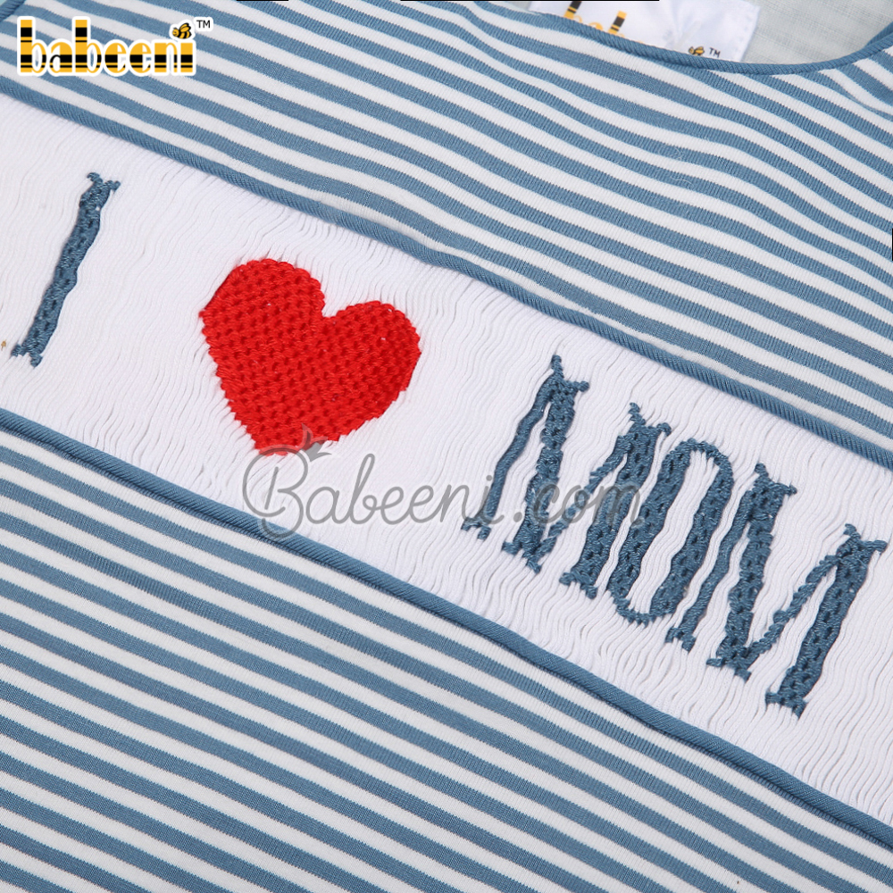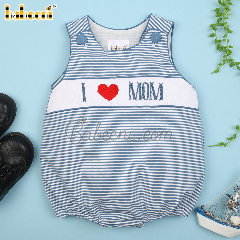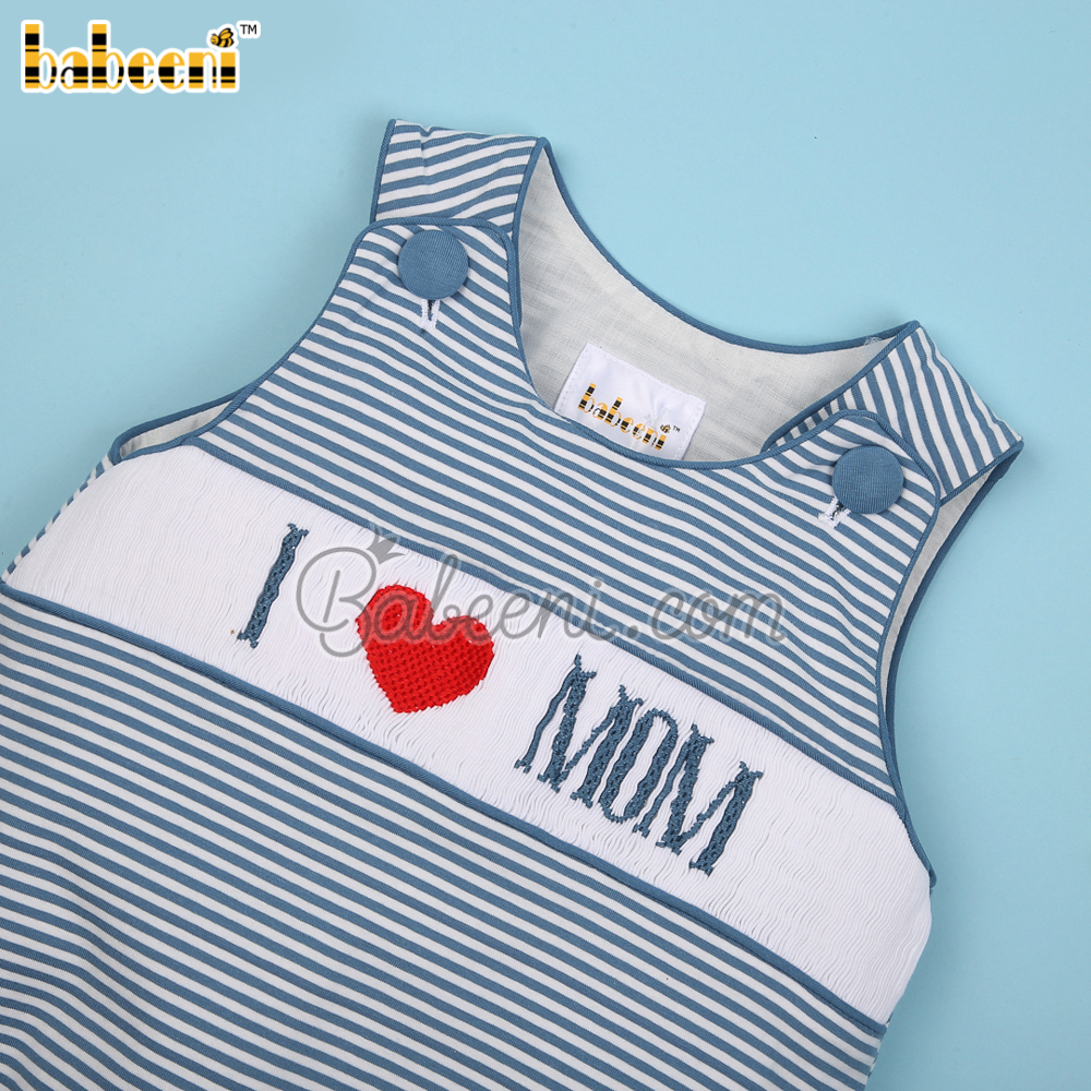 I love Mom hand smocked boy bubble – BB3399A