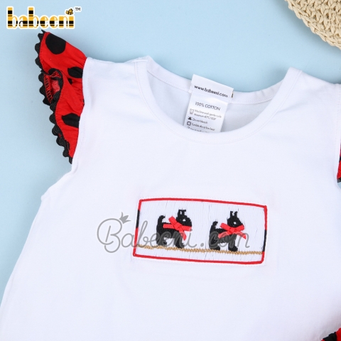 Feature: Lovely smocked short set for girls with labrador hand smocked on the chest, angel sleeves.