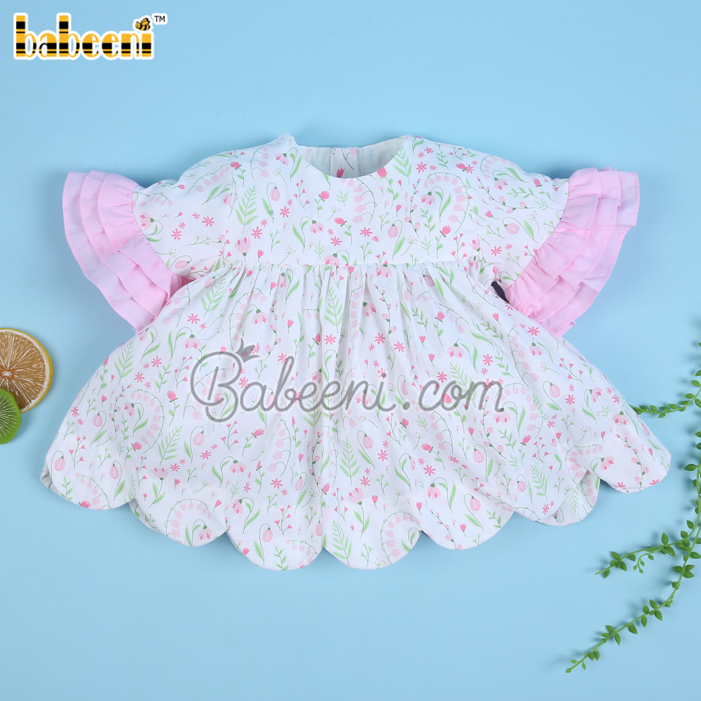 Features: Lovely two piece set for little girls with lily floral printed on fabric, ruffles on sleeves & bottom, short sleeves. Perfect for spring summer. Best gifts for birthday or special days.