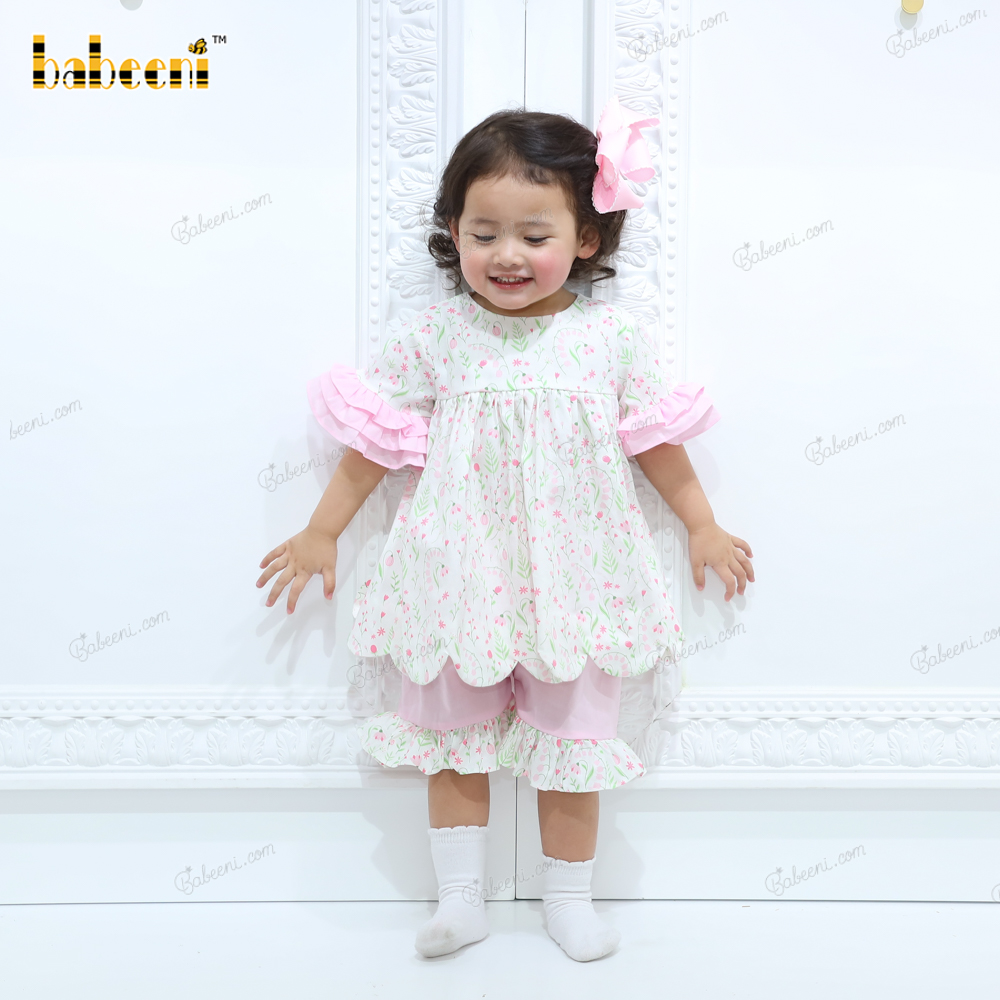 Lily floral printed girl two piece set – BB3080A
