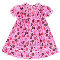 Feature: Beautiful girl dress in bishop style with geometric smocked patterns on the neck, short sleeves.