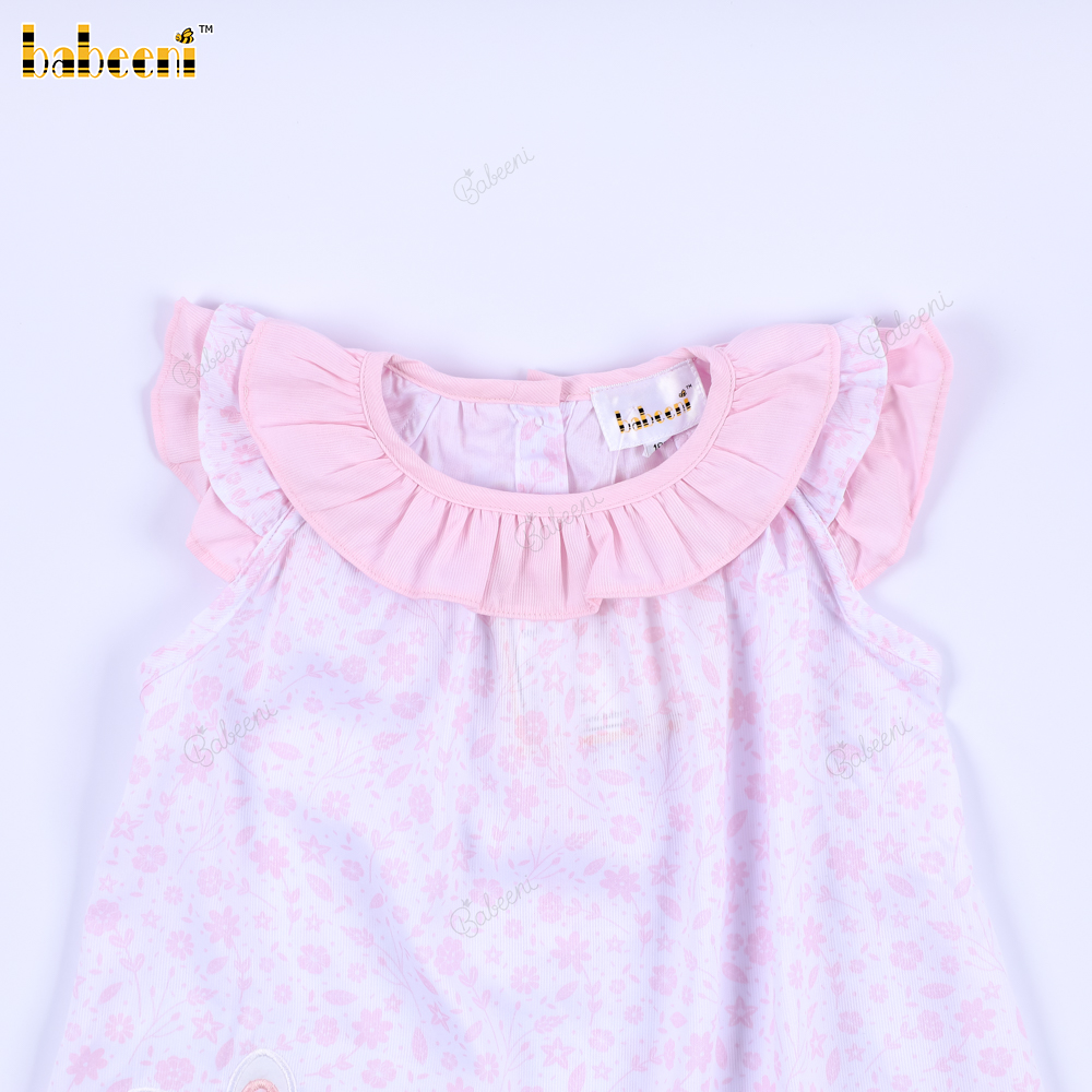 Machine Embroidery Bunny Dress In Pink For Girl - BB3246
