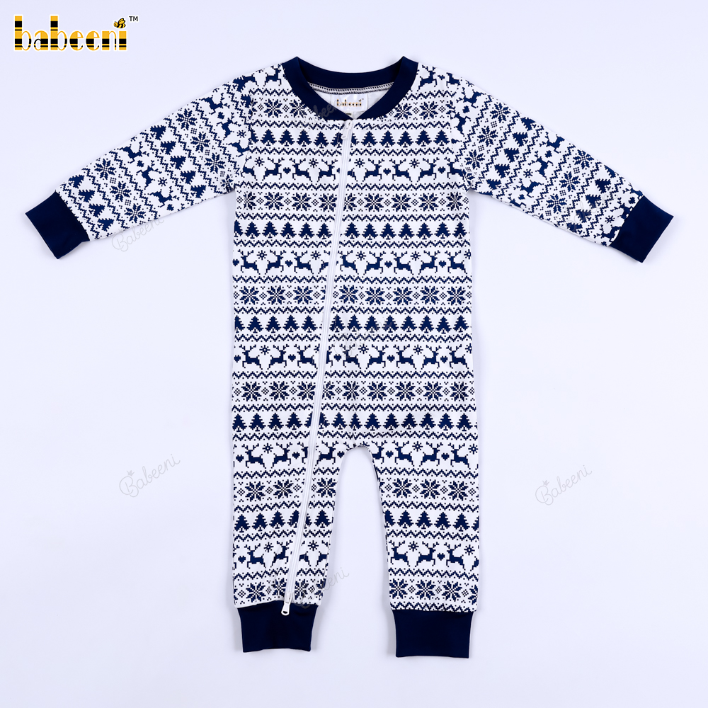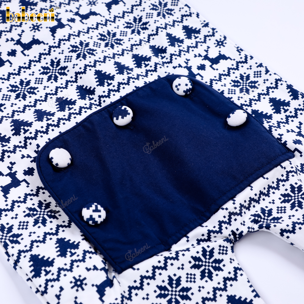 Features: This baby Christmas outfit features a classic Christmas motif with subtly repeating images of reindeer, Christmas trees, and snowflakes. The elegant charcoal purple and white color scheme creates a warm, sophisticated feel, perfect for winter. The long sleeves with ribbed collar, cuffs, and ankles provide excellent warmth, protecting your baby in cold weather. The dark blue back pocket adds a cute and practical touch. Suitable for everyday wear, outings, photoshoots, or Christmas celebrations.