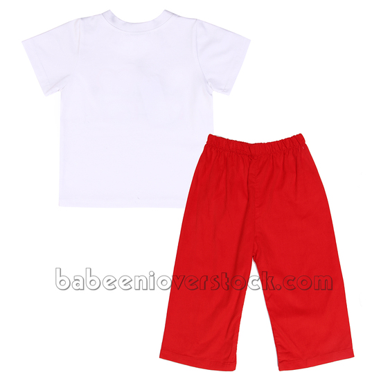 Feature: Nice applique clothing set for little boy with Mickey applique pattern on the short sleeve white top.