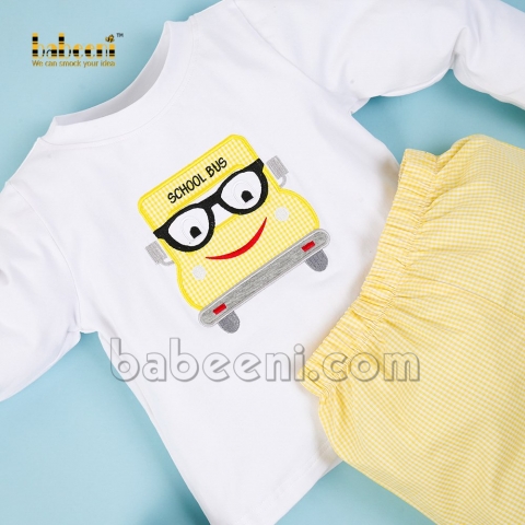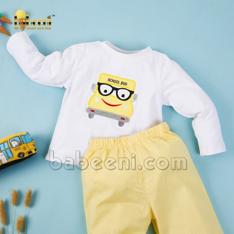 Feature: Nice T-shirt for boys with schoolbus applique on the chest, long sleeves