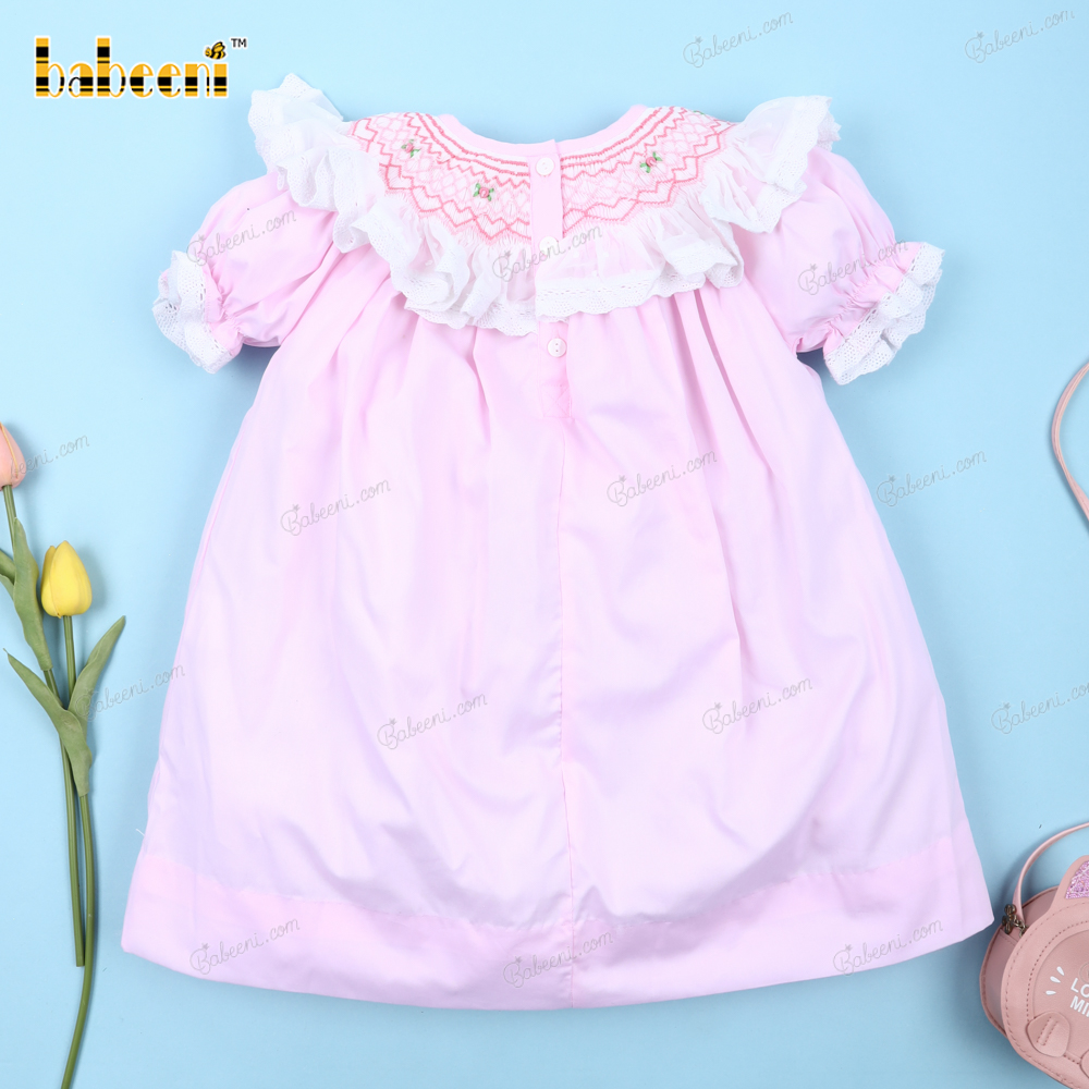 Pink Smocked Bishop Dress Hand Embroidery For Girl - BB3125A