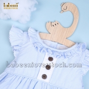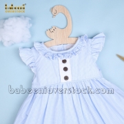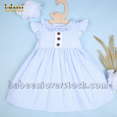Feature: Cute dress for baby girl. The dress has a round neck with ruffles, angle sleeves, and back buttons. More outstanding with coconut buttons on the front. Best gifts for birthdays or special occasions.