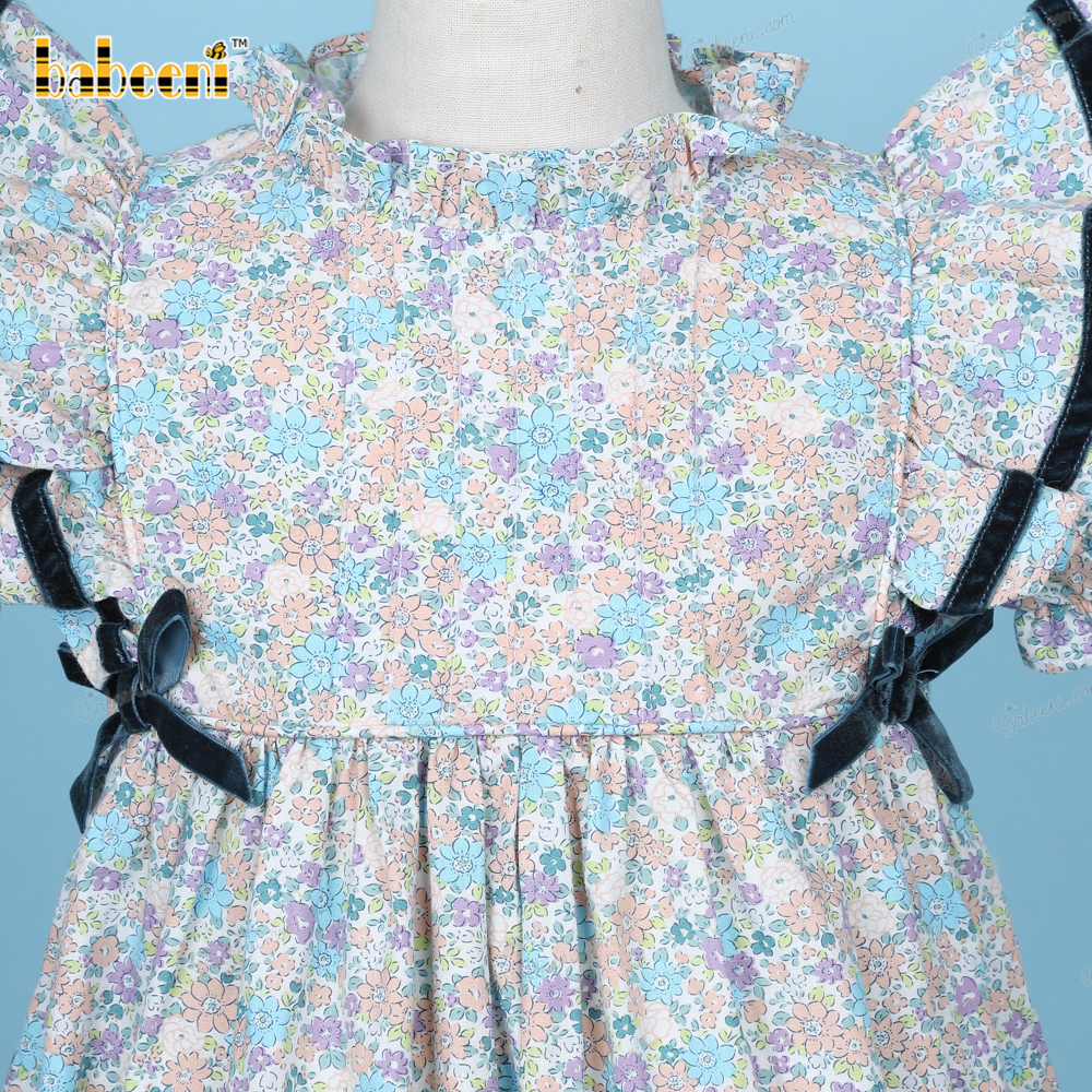 Features: Mallard green outline and green floral plain dress for your baby girl this spring and summer.