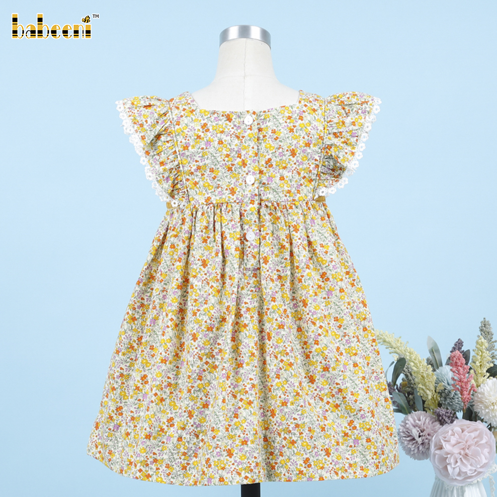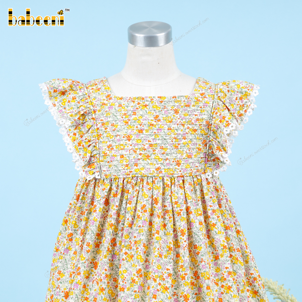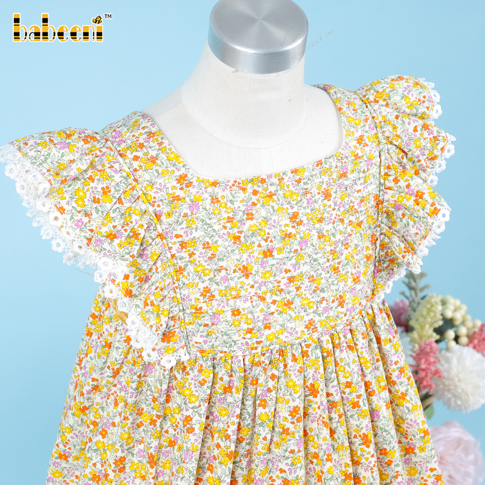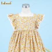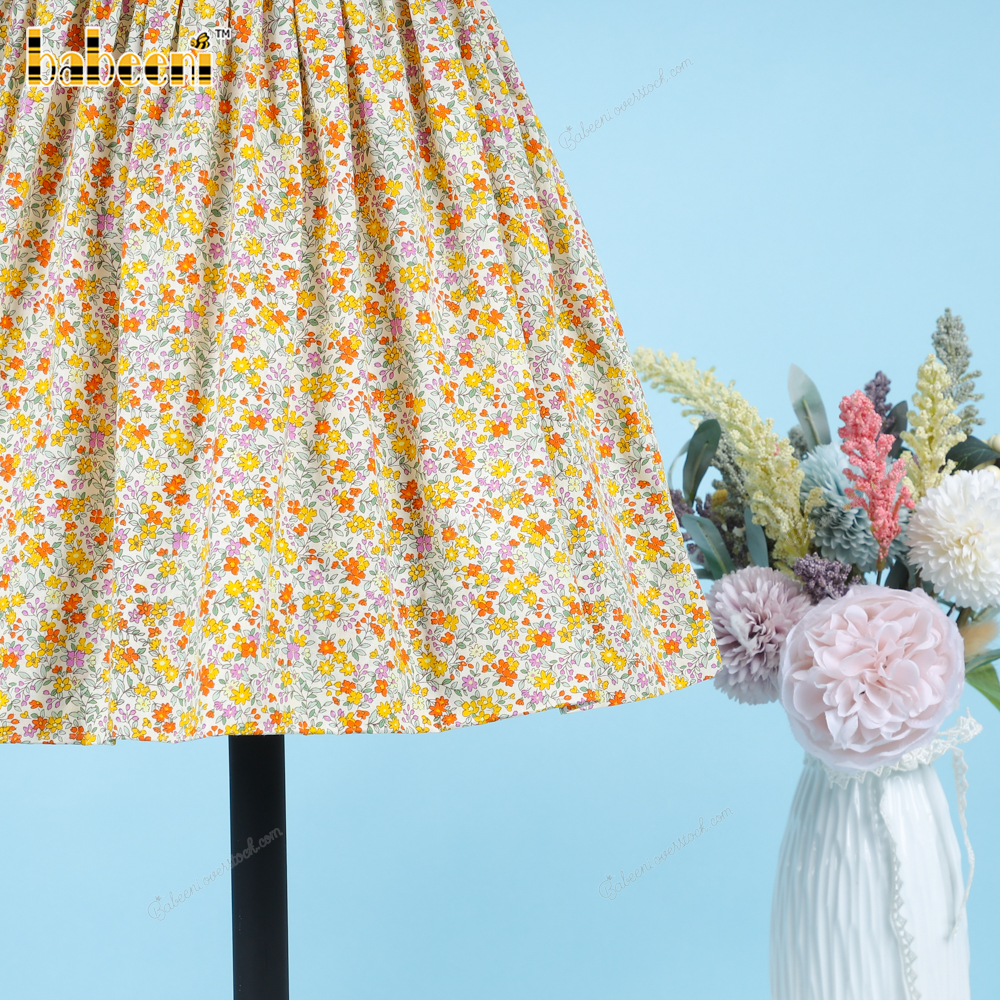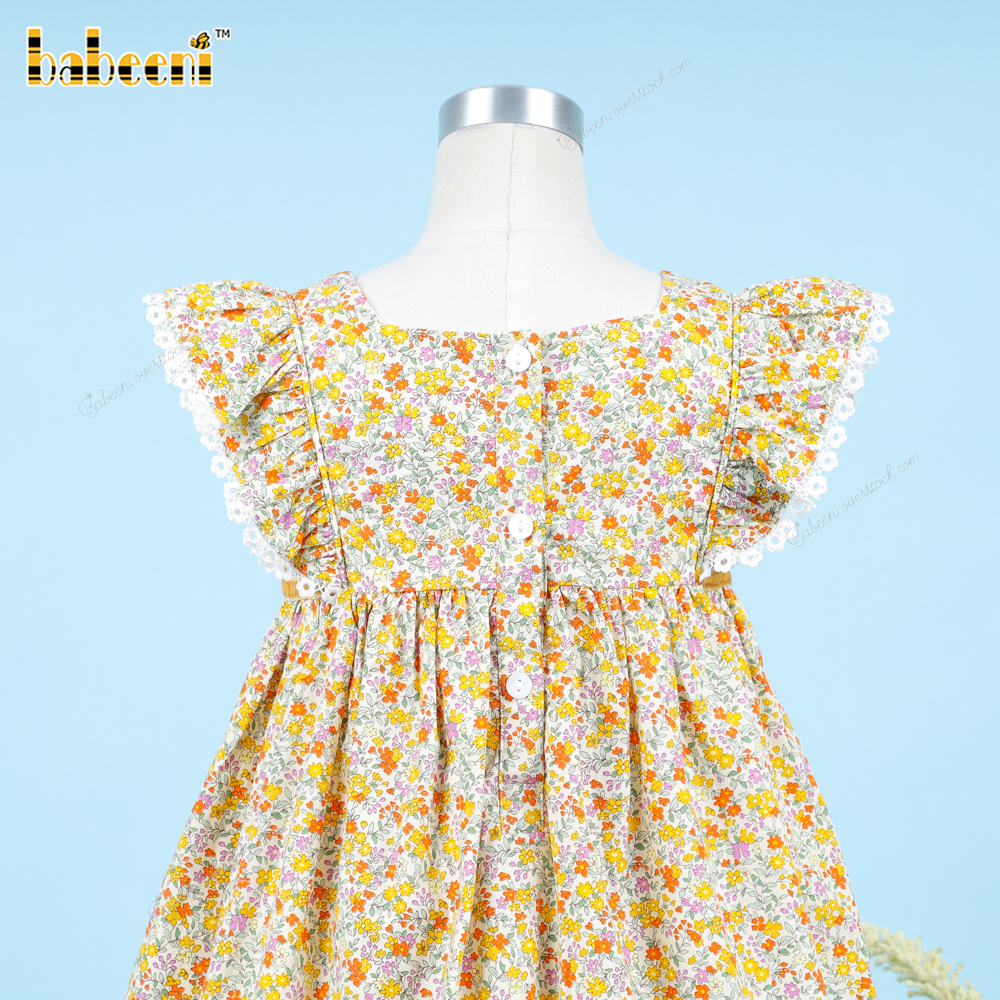 Feature: Green floral plain dress for your baby girl in this spring and summer.