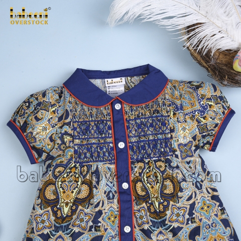 Pretty geometric paisley smocked dress - BB803D