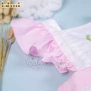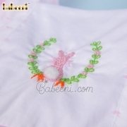 Features: Lovely baby dress for little girls with hand crochet of rabbit & hand embroidery of flowers, pink angel sleeves, ruffle on bottom. Best gifts for Easter or special days.
