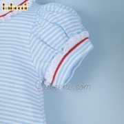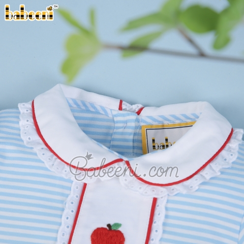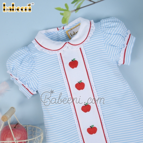 Red apple embroidery blue stripe knit girl dress - BB2161A