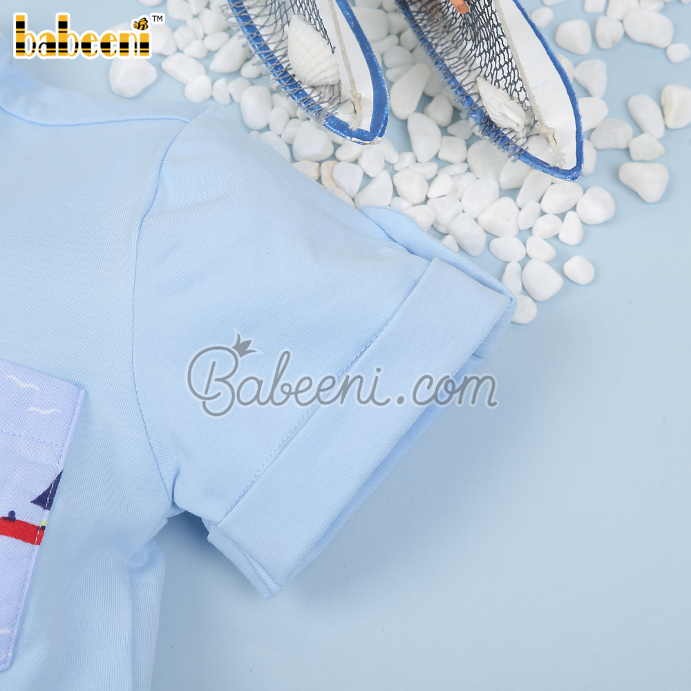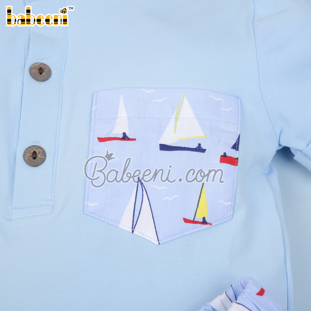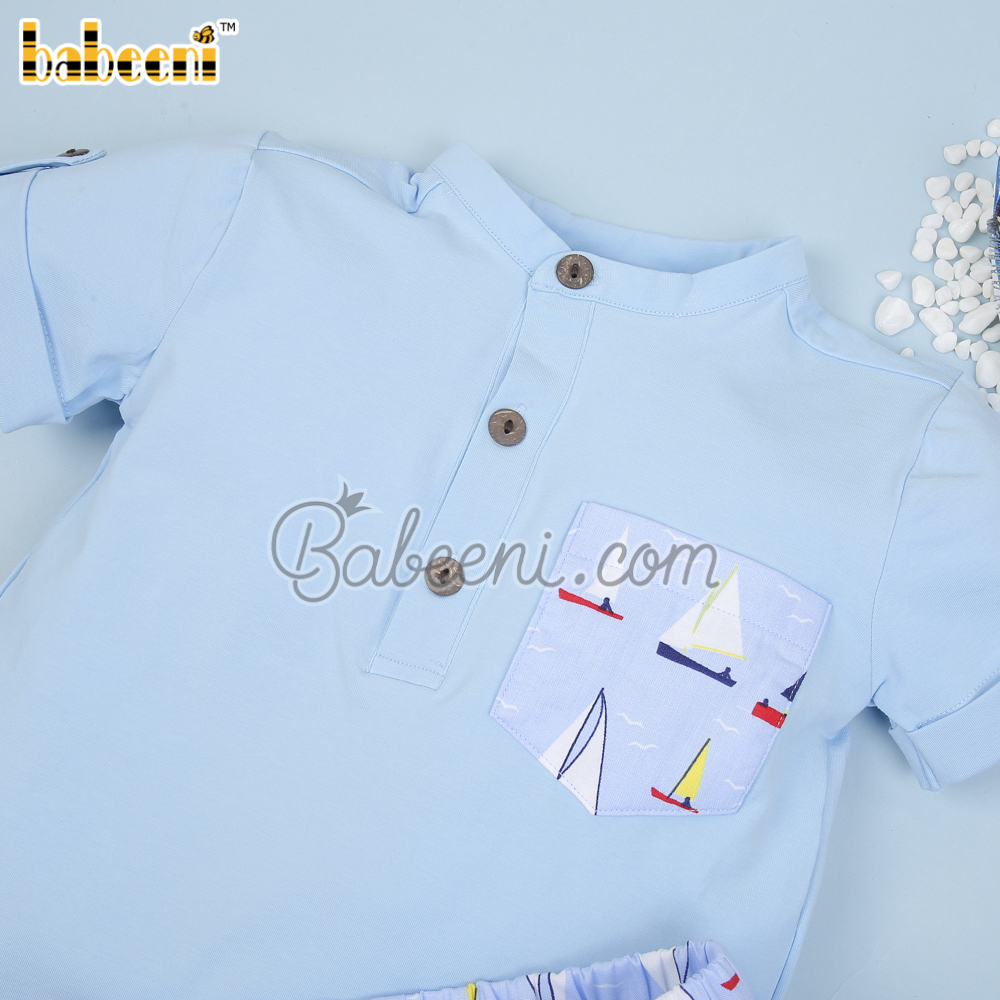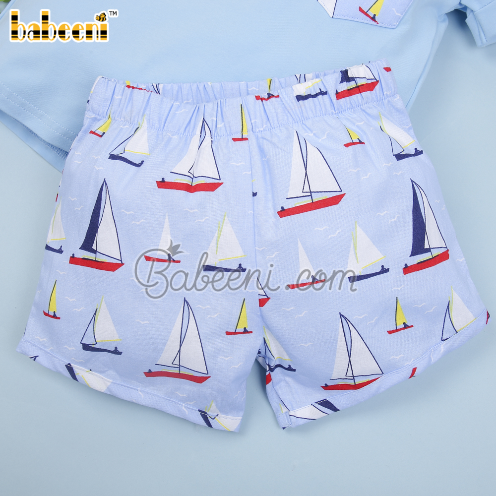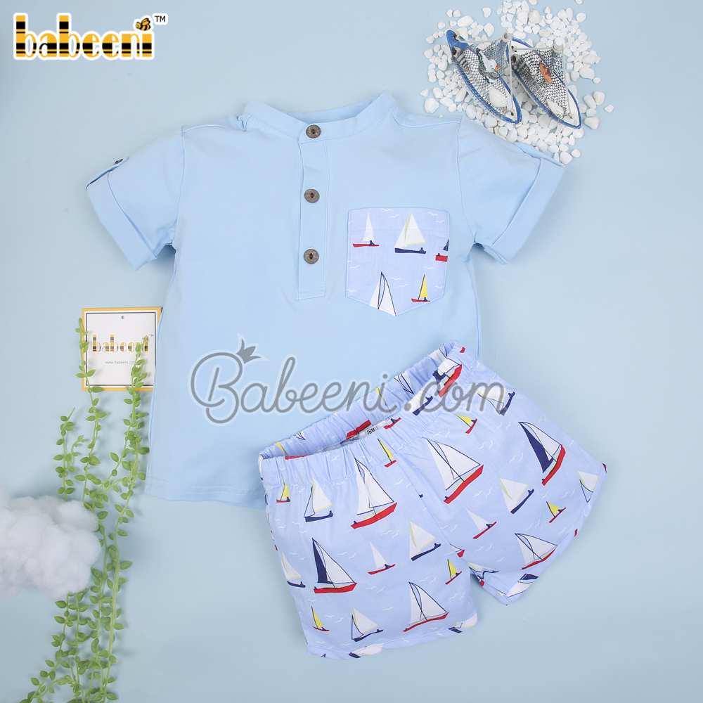 Sailboat printed boy set clothing – BB3018A