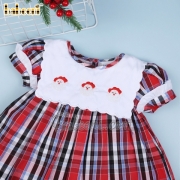 Feature: Girl dress for Christmas occasion with Santa Claus hand-embroidery pattern on scallop square bib, ruffles on sleeves