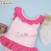 Feature:Pretty swimsuit for little girl with crab, fish and octopus machine embroidery patterns, elastic waistband