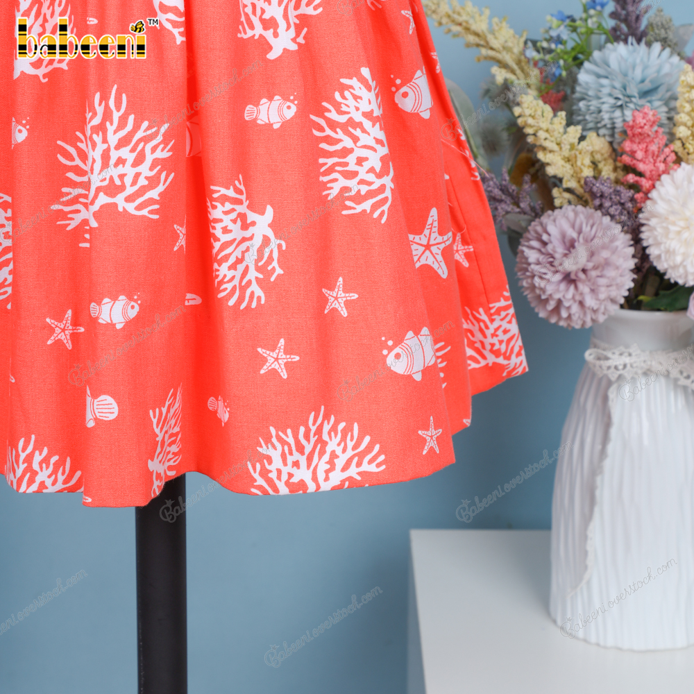 Shirred Dress In Orange White Coral For Girl - BB3262A