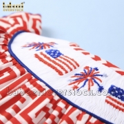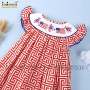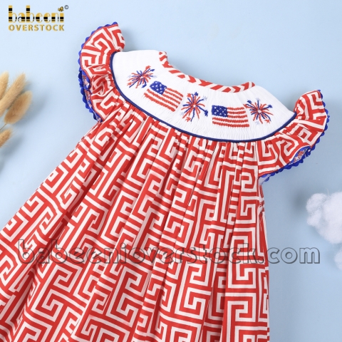 Smocked American flag and firework red greek key dress - BB2012A