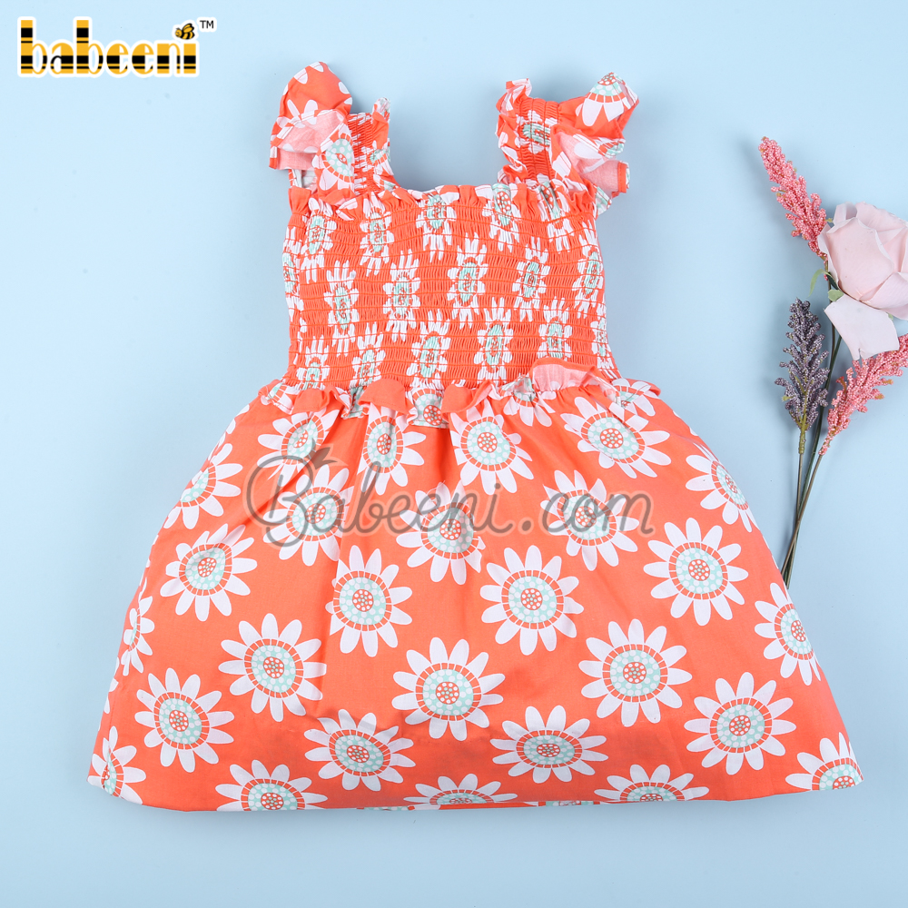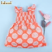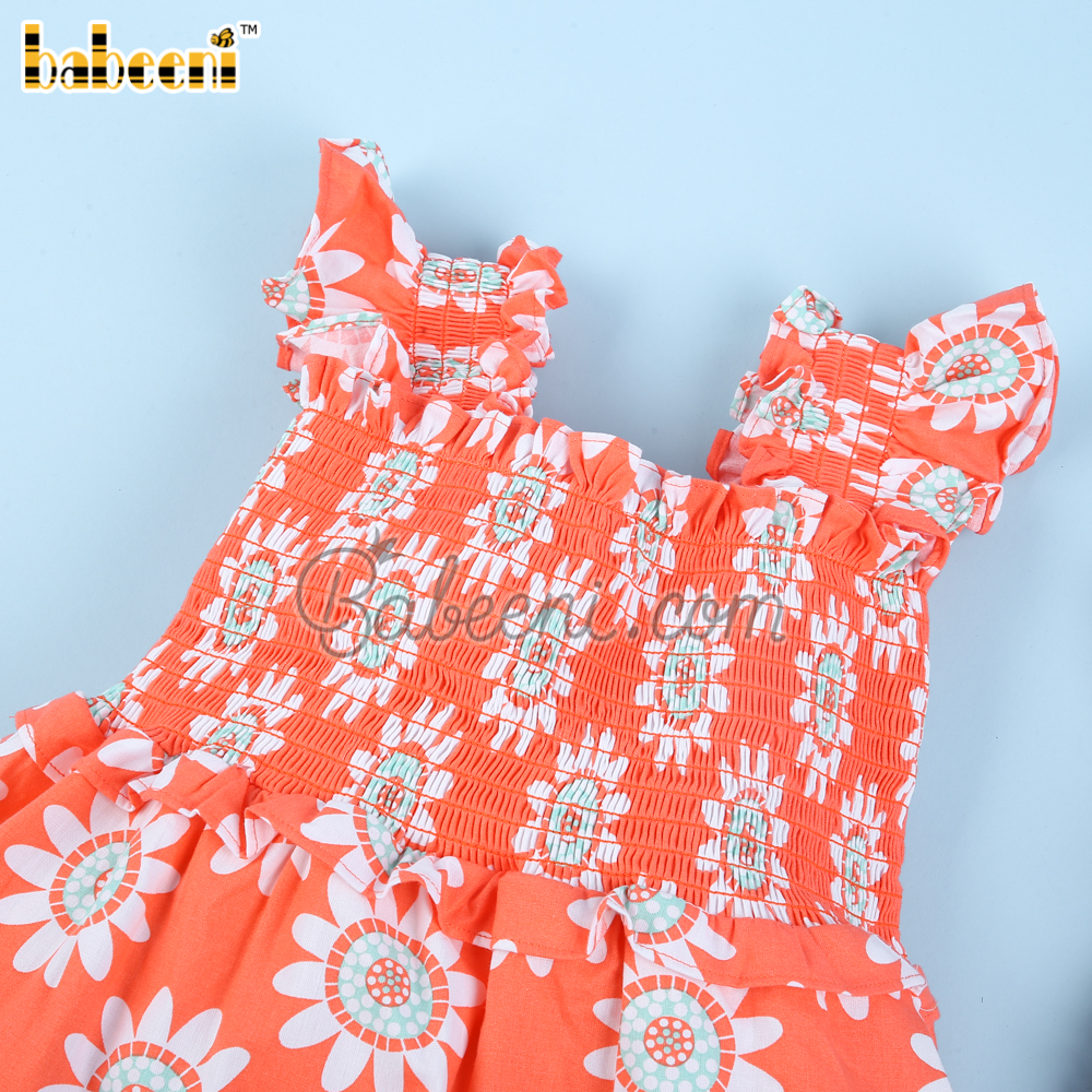 Sunflower printed in coral baby dress - BB3102A